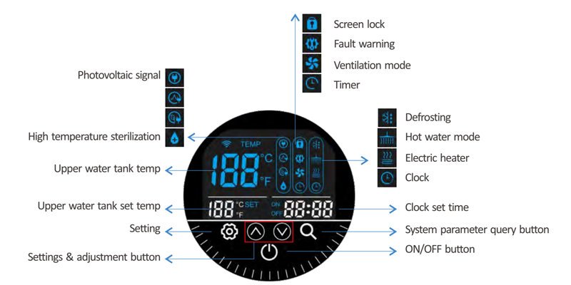 Panel kontrol LCD dengan layar sentuh untuk mengendalikan seluruh operasi unit serta dan menampilkan parameter dan status kerja